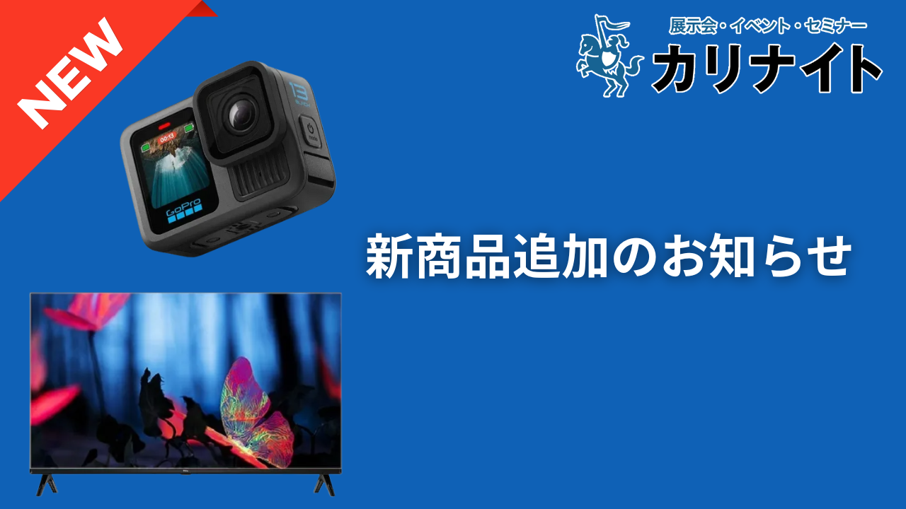 デジタル機器レンタル「カリナイト」では、6月1日~13日までの間に新商品を2点追加いたしましたのでお知らせいたします。今回の新商品ラインナップでは、最新アクションカメラやフレームレスノングレア加工の40インチ液晶モニター […]