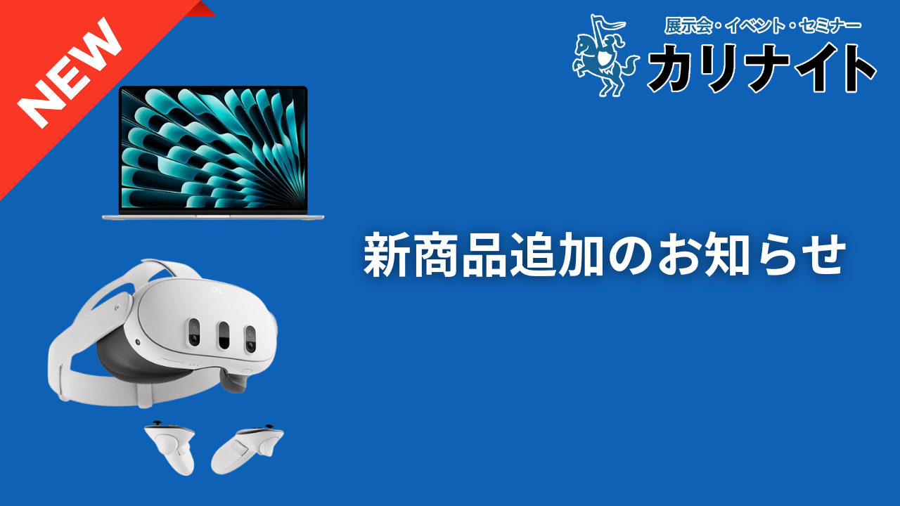 デジタル機器レンタル「カリナイト」では、6月14日~27日の期間にかけて、新に9点の新商品を追加いたしましたのでお知らせいたします。今回追加された商品には、注目の最新Macbook Airや話題のVRゴーグル「Meta […]