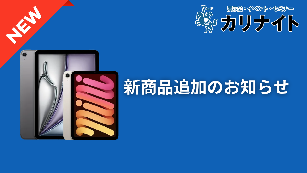 デジタル機器レンタル「カリナイト」では、4月中に新商品を10点追加いたしましたのでお知らせいたします。4月の新商品ラインナップでは、新型iPad Air(M3)・iPad mini(A17Pro)が追加され、新型iPad […]